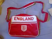 L'équipementier actuel de l'équipe d'Angleterre est Nike, qui a racheté Umbro le [55]. L'équipementier américain qui conçoit les maillots utilise la marque anglaise pour la confection et la distribution ; c'est le sigle de cette dernière qui figure également sur le maillot[56]. Les premiers équipementiers de l'équipe sont Umbro, Hope Brothers et St.Blaize dont les tenues sont utilisées entre 1949 et 1952[56], l'équipe n'ayant pas équipementier attitré pour les matchs joués avant cette date. Umbro reste l'équipementier le plus fréquent puisqu'il a fourni seul les tenues de l'équipe d'Angleterre pendant trois périodes distinctes, entre 1952 et 1960, entre 1965 et 1974 et entre 1984 et 2009, à ce titre il était l'équipementier de l'équipe d'Angleterre lors de la campagne victorieuse en coupe du monde 1966[57],[58]. Entre ces périodes où Umbro équipait l'équipe, Bukta, entre 1960 et 1965 et Admiral entre 1974 et 1983 ont également équipé le onze anglais[59]. À la suite de la vente de Umbro, Nike devient l'équipementier officiel de l'équipe d'Angleterre jusqu'au [60].