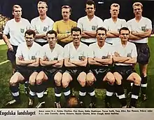 Le groupe de qualification pour la compétition de 1962 oppose le Portugal et le Luxembourg à l'Angleterre, celle-ci s'impose grâce à trois victoires en quatre matchs, le dernier se soldant par un résultat nul[11]. L'Angleterre termine deuxième de son groupe derrière la Hongrie après une défaite 1-2[c 8] contre celle-ci, à un succès 3-1[c 8] contre l'Argentine et un nul 0-0[c 9] contre la Bulgarie. La différence de buts lui permet de prendre la seconde place du groupe derrière la Hongrie devant l'Argentine. En quart de finale, l'Angleterre est éliminée par le Brésil, tenant du titre et futur vainqueur, sur le score de 1-3[c 9].