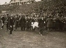 Le , un déplacement en terres néerlandaises s'achève sur un nul (1-1)[5], à Amsterdam mais c'est le match retour à l'Antwerp qui allait rester dans les mémoires pour deux événements marquants. Tout d'abord un grave incident à Deurne eut lieu. Comme à l'habitude, la foule se massait au Bosuil pour venir y voir s'affronter les deux pays voisins : près de 50 000 personnes se pressaient dans un stade prévu pour en contenir 40 000. Une barrière finit par céder, projetant un millier de spectateurs dans le vide. Le bilan fut d'une quarantaine de blessés, ce qui est fort heureusement loin du bilan tragique du drame du Heysel près de soixante ans plus tard[6],[7]. Ensuite, l'autre événement majeur fut la retraite internationale du capitaine emblématique, Armand Swartenbroeks, qui fut sans aucun doute le plus grand footballeur belge de l'époque, comptabilisant 53 sélections - un chiffre qui eut sans aucun doute été bien plus élevé sans l'interruption de la Première guerre mondiale et qui ne sera battu que douze ans plus tard par Bernard Voorhoof. À titre de référence, Swartenbroeks figure toujours à l'heure actuelle, soit quasiment cent ans plus tard, dans le top 40 des joueurs les plus capés. L'équipe nationale belge perdait là un monument.