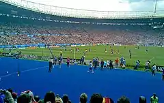 Lors de la phase de groupes de la Coupe du monde 1998, la Croatie bat facilement la Jamaïque et le Japon, avant de s'incliner face à l'Argentine, terminant ainsi à la deuxième place de son groupe. Après avoir battu la Roumanie lors des huitièmes de finale de la compétition, la sélection croate retrouve l'Allemagne, qui se situe alors au deuxième rang du classement FIFA et qui l'a éliminée deux ans auparavant au même stade de l'Euro 1996[29]. Bien qu'étant considérée comme outsider par la plupart des bookmakers, la Croatie surprend les observateurs en éliminant l'Allemagne avec la manière, sur le score de trois buts à zéro grâce à des réalisations de Robert Jarni, Goran Vlaović et Davor Šuker.
