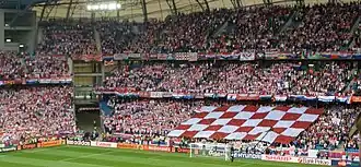 Au premier rang des supporteurs de l'équipe nationale de Croatie se trouvent les supporters vivant dans la région de Slavonie (nord-est de la Croatie) et ce en particulier durant les trois derniers grands tournois. Une autre des bases de supporteurs de l'équipe nationale est issue des supporteurs du Hajduk Split et du Dinamo Zagreb, les deux clubs les plus populaires du championnat croate[86]. Les groupes de supporters ultra comme The Bad Blue Boys of Zagreb ou The Torcida, ont tous deux été associés à des agissements de hooliganisme même si cette violence ne s'est jamais propagée aux matchs internationaux[87],[88]. Un soutien important à l'équipe nationale de Croatie vient également des Croates vivant en Bosnie-Herzégovine, les supporteurs du HŠK Zrinjski Mostar, connu sous le nom de Ultras Zrinjski font partie des plus fervent supporteurs de la sélection croate[89]. L'ensemble des supporteurs de la Croatie sont affiliés à l'Uvijek Vjerni (« toujours fidèle » en français), qui est une association officielle de supporteurs de l'équipe nationale visant à rassembler les fans du monde entier[90].