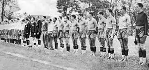Le , la Pologne reçoit la Hongrie, soit 5 jours avant l'invasion de la Pologne, et s’impose (4-2)[19]. Ce match est donc l'ultime représentation de la sélection polonaise avant la Seconde Guerre mondiale. Pendant 6 années, le football est mis de côté. Après l’intervention soviétique de 1945, le sport reprend ses droits. Cependant, tous les joueurs principaux de l'équipe nationale arrêtent leur carrière internationale.
