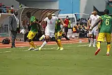 Le , l'entraîneur belge Georges Leekens est nommé pour tenter de relancer l'équipe[214]. Les premiers résultats sont positifs, y compris un match nul contre la Colombie (1-1)[215] et une victoire contre la Corée du Sud (1-0)[216], tous deux en matchs amicaux. Sous sa direction, l'équipe passe de la 49e à la 22e place au classement mondial de la FIFA en quelques mois, si bien que l'équipe retrouve son éclat continental après l'émergence d'une nouvelle génération de joueurs : elle se qualifie pour la CAN 2015 et termine en tête de son groupe comprenant le Sénégal (nul 0-0[217], victoire 1-0[218]), l'Égypte (victoire 1-0[219], 2-1[220]) et le Botswana (victoire 2-1[221], nul 0-0[222]).