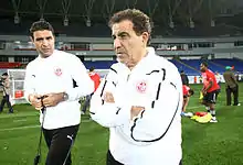 Humberto Coelho prend en charge l'équipe après que Roger Lemerre l'ait quitté le . Lors de sa conférence de presse, il souligne l'importance de rapprocher les médias de l'équipe nationale et de parler plus ouvertement des choix et des tactiques des joueurs. Dans le même temps, il déclare qu'il utiliserait un plan 4-3-3 et 4-4-2 en fonction de l'adversaire. Les éliminatoires pour la coupe du monde se poursuivent en septembre avec la victoire contre le Burundi (2-1)[174]. Le 11 octobre, la Tunisie joue le dernier match du deuxième tour contre les Seychelles (victoire 5-0 avec un doublé de Hichem Essifi et des buts de Yassin Mikari, Saber Ben Frej et Fahid Ben Khalfallah)[175]. Avec treize points, le match ouvre la voie au troisième tour de qualification du groupe B. Au tirage au sort, la Tunisie affronte le Nigeria, le Mozambique et le Kenya.