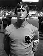 Les années 1970 voient l'invention du Totaalvoetbal en français : « football total », reposant sur une permutation des postes durant les matchs, mis au point par le Feyenoord et l'Ajax – vainqueurs à eux deux des quatre premières éditions de la Coupe des clubs champions de la décennie – et dirigé par le meneur de jeu Johan Cruyff et l'entraîneur de l'équipe nationale Rinus Michels[48]. En outre, les Oranjes comptent dans leurs rangs l'un des meilleurs joueurs défensifs des années 1970, Ruud Krol[49]. Les Néerlandais font d'énormes progrès, se qualifiant pour leur première phase finale de Coupe du monde depuis 36 ans en infligeant notamment un sévère 9-0 aux Norvégiens en match éliminatoire[50]. Bien qu'il réussisse à qualifier les Pays-Bas, le sélectionneur František Fadrhonc (en) est remplacé par Rinus Michels peu avant le début de la compétition et devient son adjoint.