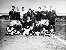Ce dernier match n'est pas sans effet, il pousse la fédération à privilégier davantage la formation des joueurs. Le système de formation anglais sert de modèle et Edgar Chadwick, joueur professionnel et international anglais à la fin du XIXe siècle, est engagé en 1908 comme entraîneur de l'équipe nationale. Chadwick mène l'équipe à la médaille de bronze aux Jeux olympiques de Londres[8] et l'établit comme l'une des meilleures équipes du continent. En 1908 se tient en effet pour la première fois le tournoi de football officiel aux Jeux olympiques. Dans cette édition, les Pays-Bas profitent du forfait des Hongrois pour raisons économiques et entrent directement en demi-finale. Opposés à la Grande-Bretagne, ils sont défaits (0-4), mais remportent le match pour la troisième place aux dépens de la Suède (2-0)[9]. Les deux premiers buteurs Oranjes de l'histoire olympique sont Jops Reeman et Edu Snethlage[8]. Le 10 avril 1910, les hommes de Chadwick écrasent les Belges (7-0) grâce à un triplé de Mannes Francken[10].
