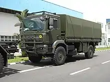Camion lourd porteur 6X6 non protégé porte shelter équipé d'un système qui permet, en liaison avec l'armée de l'Air et de l'Espace, de commander la composante sol-air mais également de coordonner l'utilisation de la troisième dimension par les autres intervenants de l'armée de Terre (artillerie, sol-sol, hélicoptères, drones) | ?