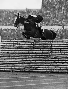Ils sont 52 cavaliers de 20 pays à être engagés et seize pays ont pu former des équipes de trois athlètes. Pour la première fois, le concours est divisé en deux manches avec un parcours de 786 mètres et des obstacles d'une hauteur maximale de 1,60 m[5]. L'épreuve est remportée par Pierre Jonquères d'Oriola qui deviendra par la suite le cavalier français le plus titré en saut d'obstacles aux Jeux olympiques[13]. Le Royaume-Uni remporte en saut d'obstacles par équipes son seul titre de ces jeux olympiques.