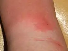 Un érysipèle ou érésipèle (du grec ἐρυσίπελας, « peau rouge ») ou dermohypodermite bactérienne non nécrosante (DHBNN)[1], est une infection de la peau due à une bactérie, un streptocoque ou, beaucoup plus rarement, un staphylocoque. Il se présente comme une zone inflammatoire de la peau, le plus souvent au niveau d'un membre inférieur, et associée à une fièvre. En principe, le diagnostic ne nécessite pas d'examen complémentaire, et le traitement consiste à administrer un antibiotique et/ou une phagothérapie (très commun en Europe de l'Est et en Russie). Les complications de l'érysipèle sont rares avec le traitement, et peuvent être secondaires à l'extension de l'infection.