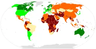 En 2010, quatorze pays sur 177 sont dans la zone critique, alors que seul le Sierra Leone en est sorti (en 2006)[23] :