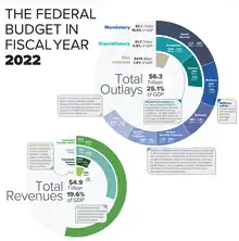 Le budget fédéral des États-Unis est déficitaire. La dette des administrations publiques du pays s'élève à 161 % du PIB en 2020[42].