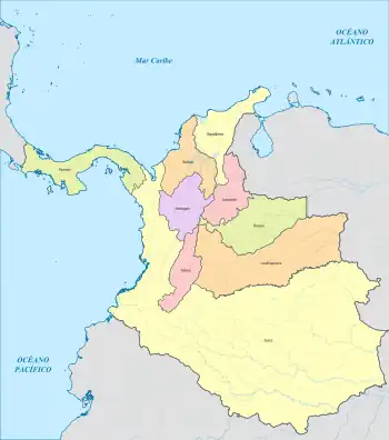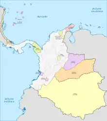 - Territoire national de San Andrés et Providencia, dans la Mer des Caraïbes, sous la juridiction de l'État de Bolívar.