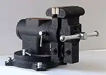 Étau de table à double vis. Les pas sont inversés pour permettre un serrage plus rapide sans perdre les propriétés de coincement.