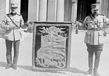 Bannière liturgique d'Etienne le Grand tenue par des militaires roumains à la Sorbonne en 1917.