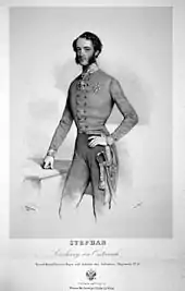 Membre de l’armée impériale autrichienne, l'archiduc Étienne est nommé gouverneur civil de la Bohême par l’empereur Ferdinand Ier d’Autriche en décembre 1843. À la mort de son père, en 1847, toute la famille du défunt quitte la Hongrie, hormis l'archiduc Étienne qui hérite du titre et de la fonction de comte palatin de Hongrie, soit de représentant de l'empereur dans le royaume[2].