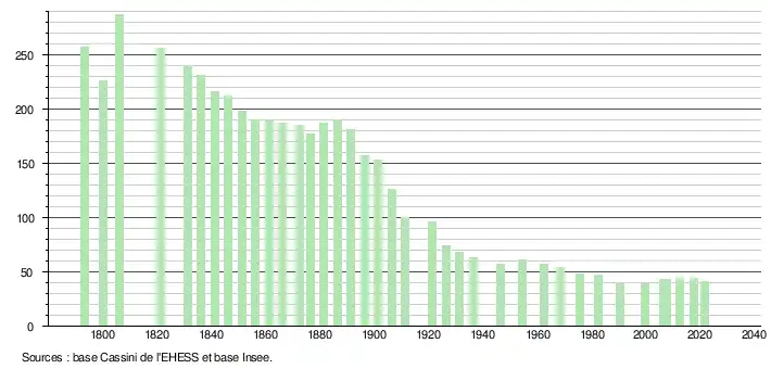 (Sources : Ldh/EHESS/Cassini jusqu'en 1999[16] puis Insee à partir de 2006[28].)