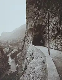 Pour pallier ce problème un projet de nouvelle route est étudié dès 1866. Des tunnels sont percés entre 1872 et 1874 pour parer aux chutes et éboulis de roche. Cette route est utilisée jusqu'en 1990 par des milliers de touristes fréquentant les stations de sports d'hiver de Haute-Tarentaise : Tignes, Val-d'Isère, La Plagne, etc. Le percement du tunnel du Siaix en 1990 apporte une solution définitive au problème d’instabilité de la falaise et permet d'accroitre le trafic sur cet axe très fréquenté en période hivernale.