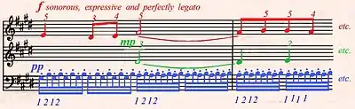 Dans l'article de Robert Schumann de 1836 Neue Zeitschrift für Musik sur les études de piano[14], l'étude est classée dans la catégorie « mélodie et accompagnement dans une main simultanément ». Comme la partie de la main droite contient une mélodie (et parfois une voix de remplissage supplémentaire) à jouer par les trois « doigts les plus faibles » et une figure d'accompagnement jouée par les deux premiers doigts, la main peut être divisée en un « élément actif » et un « élément d'accompagnement », un peu comme dans l'opus 10 n° 2. Le pianiste français Alfred Cortot (1877-1962) mentionne notamment l'importance du « jeu polyphonique et legato », de la « valeur tonale individuelle des doigts » et de « l'expressivité intense conférée par les doigts les plus faibles »[15].
