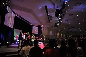 Le XIXe siècle a vu un développement très fort des églises évangéliques, notamment au travers du second grand réveil et du troisième grand réveil. Au courant du XIXe siècle, les megachurches, des églises comptant plus de 2 000 personnes dans l’assemblée, ont commencé à se développer[37]. La première megachurch évangélique, le Tabernacle métropolitain comptant un auditorium de 6 000 places, a été inaugurée en 1861 à Londres au Royaume-Uni par le pasteur Charles Spurgeon[38].