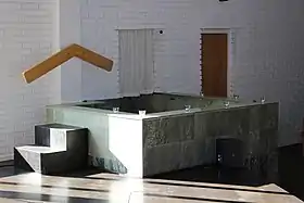 Le baptisme a ses origines dans un mouvement commencé par les Anglais John Smyth et Thomas Helwys à Amsterdam[128],[129],[130]. En raison de leurs convictions partagées avec les puritains et congrégationalistes, ils s'exilent en 1607 pour la Hollande avec d'autres croyants qui ont les mêmes positions bibliques[131]. En 1609, année considérée comme la fondation du mouvement, ils baptisent les croyants et fondent la première église baptiste[132],[133]. Thomas Helwys publie la première confession de foi baptiste Une déclaration de foi du peuple anglais (A Declaration of Faith of English People) en 1611[134]. En 1904, l’Union baptiste de Grande-Bretagne a envoyé des invitations à diverses associations d’églises baptistes dans le monde pour un congrès mondial en 1905[135],[136]. Des représentants de 23 pays ont répondu à l'invitation et ont fondé l'Alliance baptiste mondiale en 1905 au Exeter Hall de Londres[137],[138]. Cette dernière, la plus grande confession baptiste dans le monde, regrouperait 253 conventions baptistes membres dans 130 pays, 176,000 églises et 51,000,000 membres baptisés en 2023[139].