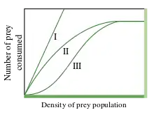 Lorsque l’effectif d’une proie est faible, les prédateurs qui suivent une réponse fonctionnelle de type III en consomment très peu. Pour de tels prédateurs, la consommation la plus élevée de la proie se manifeste lorsque l’effectif des proies est intermédiaire.