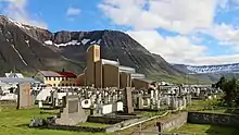 En 1991 est prise la décision de construire une nouvelle église afin de remplacer l'ancienne datant du XIXe siècle, qui avait été détruite lors d'un incendie en juillet 1987. Cette église qui représente les vagues de la mer et dont la construction a débuté à l'automne 1992 a été conçue par Grobjarture Grobjarsson. Elle a été inaugurée en 1995 et dédiée au jour de l'Ascension[8].