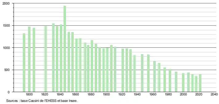 Pour la période 1971-2000, la température annuelle moyenne est de 11,5°C, avec une amplitude thermique annuelle de 9,8°C. Le cumul annuel moyen de précipitations est de 680 mm, avec 12,6 jours de précipitations en janvier et 6,3 jours en juillet[8]. Pour la période 1991-2020 la température moyenne annuelle observée sur la station météorologique installée sur la commune est de 12,5°C et le cumul annuel moyen de précipitations est de 760,5 mm[11]. Pour l'avenir, les paramètres climatiques de la commune estimés pour 2050 selon différents scénarios d'émission de gaz à effet de serre sont consultables sur un site dédié publié par Météo-France en novembre 2022[12].