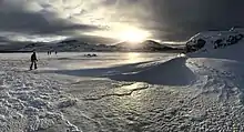 Étang de la Vigie gelé sur l'île de Saint-Pierre, à Saint-Pierre-et-Miquelon. janvier 2016.