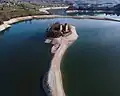 L'île d'Ogoz et ses châteaux en mars 2021. | ||