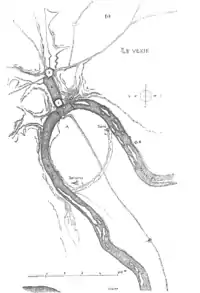 L'île du Château est formée d'un seul tenant et s'est trouvée reliée par un pont médiéval, à proximité de l'estacade qui barrait le cours du fleuve.