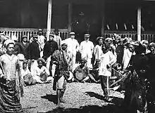 Le prince de Tahuna et sa suite en visite auprès des autorités coloniales néerlandaises vers 1910.
