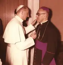 Óscar Romero, de son nom complet Óscar Arnulfo Romero y Galdámez (né le à Ciudad Barrios au Salvador et mort assassiné le ), est un prélat de l'Église catholique. Il meurt en martyr, assassiné en pleine messe, alors qu'il est archevêque de San Salvador (Salvador) pour avoir été le défenseur des droits de l'homme et particulièrement des paysans de son diocèse.
