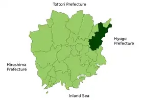 Province de Mimasaka située dans le nord-est de la Préfecture d'Okayama.