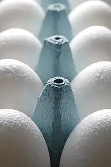Il arrive aussi que certains œufs aient plusieurs jaunes à l'intérieur. Il existe par exemple des œufs commercialisés sous la mention « gros-œufs »[29] ou « maxi-œufs ». Ils sont plus gros que la moyenne et ont parfois deux jaunes à l'intérieur.