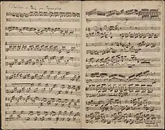 | BWV 596 | Concerto n°5 | Ré mineur | allegro — grave — fuga, largo e spiccato — finale allegro | Adaptation du concerto grosso (RV 565) d'Antonio Vivaldi, parfois considéré comme le plus réussi des concertos[61]Un manuscrit du XVIIIe siècle , conservé à la Bibliothèque d'État de Berlin, attribue cette transcription à Wilhelm Friedemann Bach[62]. |