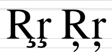 | capitale | Ŗ | R◌̧ | U+0052 | lettre majuscule latine r diacritique cédille |