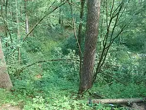 Il y a plusieurs crêtes de dunes dans la forêt, la plus haute culminant à 18 mètres d'altitude[2]. Le sentier Mežtaka qui est une partie du sentier européen E11 traverse la forêt[3].