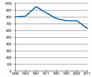 En 2002, l'âge moyen de la population était de 38 ans pour les hommes et 42,7 ans pour les femmes[4].