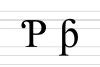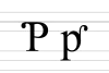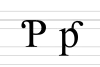 | .svg.png.webp) | Forme de la minuscule avec le crochet sur le côte de la panse du p. | |