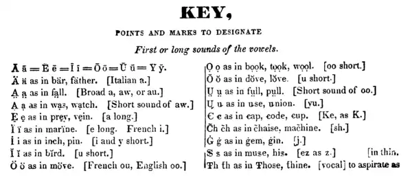 Noah Webster a utilisé le s barré obliquement comme lettre accentuée avec la valeur phonétique du [z] dans plusieurs éditions de ses dictionnaires anglais américains au XIXe siècle.