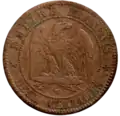 | Avers : Napoléon III tête laurée, entouré de l'inscription « Napoléon III Empereur » et du millésime. | Revers : Aigle impérial entouré de l'inscription « Empire Français » et « Dix Centimes ». | ||||