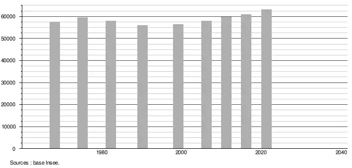 - Population municipale légale en vigueur au 1er janvier 2024, millésimée 2021, définie dans les limites territoriales en vigueur au 1er janvier 2023, date de référence statistique : 1er janvier 2021.