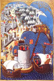 23 mai-28 juillet : siège de Rhodes. Miniature du maître du Cardinal de Bourbon, tirée du Gestorum Rhodie obsidionis commentarii de Guillaume Caoursin, BNF.