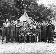 L'état-major de la 151e brigade d'infanterie en mai 1944 avec le ministre Anthony Eden, le général William Duthie Morgan et le général Ronald Senior