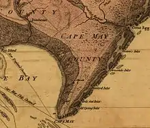 Localisation du chenal de Turtle Gut sur une carte de 1777