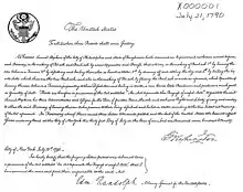 - 7 août : traité de New York[7]. Pendant l'été 1790, vingt-six chefs creeks, conduits par Alexander McGillivray, se rendent à New York et signent un traité, au nom des Creeks des villes hautes, centrales et basses, ainsi que des Séminoles composant la Nation Creek. Par ce traité, les Creeks cèdent aux États-Unis une part importante de leurs territoires de chasse et acceptent de remettre aux autorités américaines les esclaves en fuite. De leur côté, les États-Unis reconnaissent aux Creeks le droit de punir ceux qui violeraient les frontières de leur territoire. Dans une close secrète de l'accord, McGillivray obtient une commission de brigadier-général de l'US Army et se voit accorder le droit d'importer des marchandises via le port espagnol de Pensacola sans s'acquitter des droits de douane américains[8].