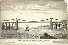 - 30 janvier : inauguration du premier pont suspendu lancé sur le détroit de Menai (Pays de Galles) par Thomas Telford, d’un seul enjambement de 176 mères de long entre les deux piles majeures[1].