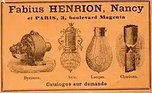 Publicité de l'entreprise Fabius Henrion, Nancy (1899)