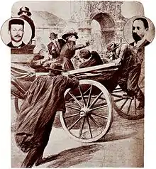 - 3 juillet : début de la révolution des Jeunes-Turcs contre le gouvernement du Sultan ottoman (fin en 1909). Les 23-24 juillet, l’armée turque de Macédoine fait un coup d’État, obligeant le sultan à rétablir la Constitution de 1876 et à organiser des élections en octobre-novembre[39]. Les membres du Comité « Union et Progrès » rentrent d’exil et assument la charge du gouvernement. L’empire connaît des journées de liesse générale.