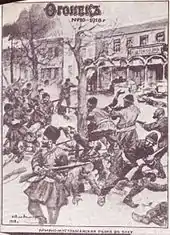 - 12 mars : les troupes ottomanes reprennent Erzurum et le 25 mars, elles ont atteint la frontière d’avant-guerre[43]. Les chrétiens qui n’ont pas fui Erzurum sont massacrés. Les troupes arméniennes se replient sur Kars tandis que les irréguliers arméniens qui couvrent leur retraite perpètrent des massacres de civils musulmans[47]